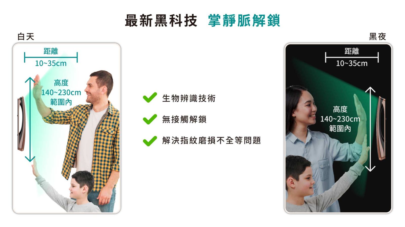 ●臉部辨識、掌靜脈、APP、指紋、密碼、卡片、機械鑰匙