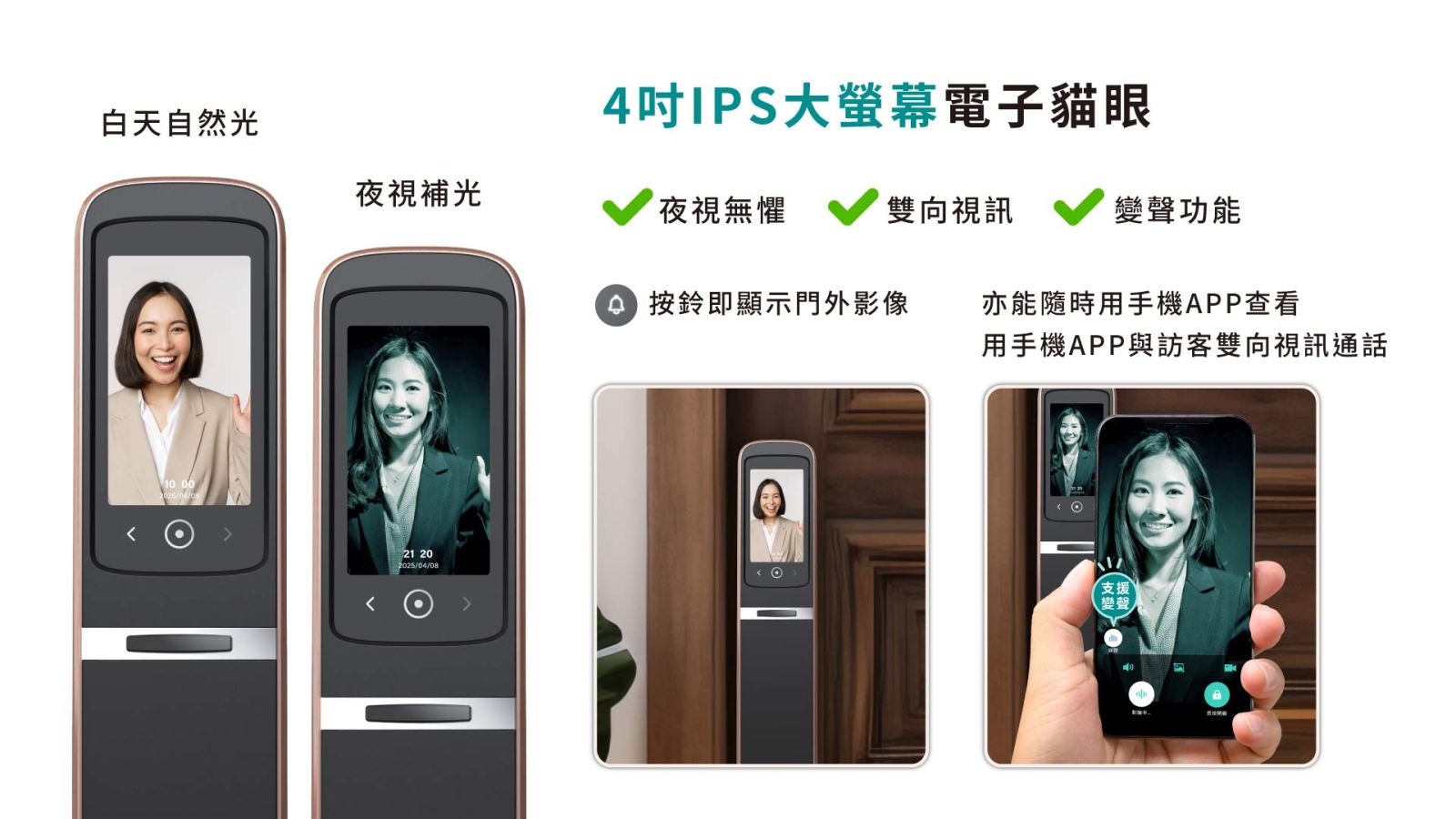 ●4吋IPS大螢幕電子貓眼