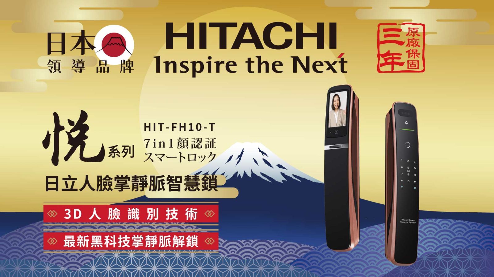 日立 悅系列 七合一人臉掌靜脈電子鎖
