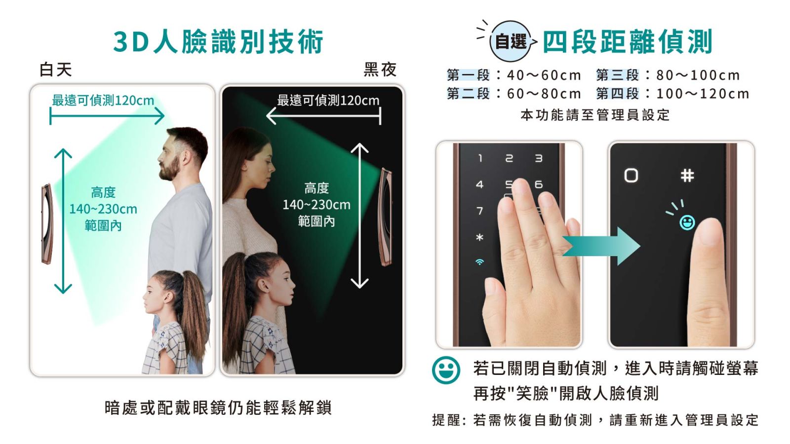●3D人臉識別技術, 最遠可偵測100cm