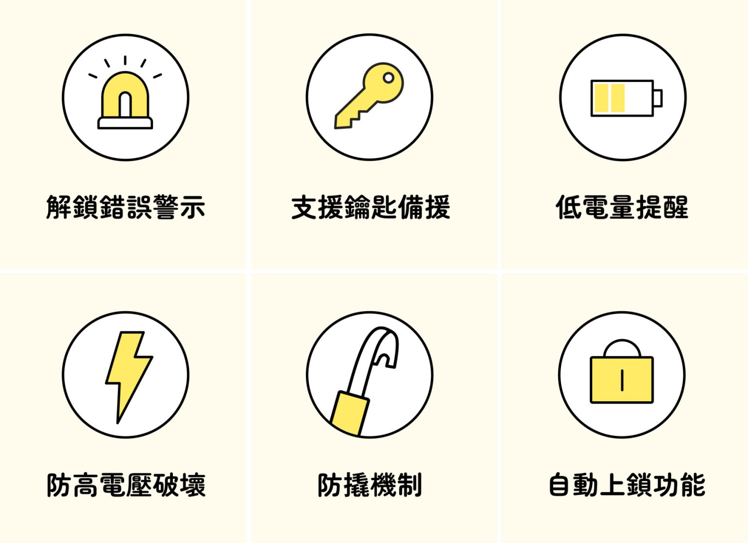 小島快鎖 F 不只支援 七種解鎖方式(指紋、密碼、感應卡、NFC 手環、一次性密碼、App 遠端、實體鑰匙),還搭載全球唯一防潮晶片與防靜電設計,專為台灣氣候與家庭需求打造。無論是家中長輩、孩子,或需要遠端協助開門的時刻,都能輕鬆、安心又便利!