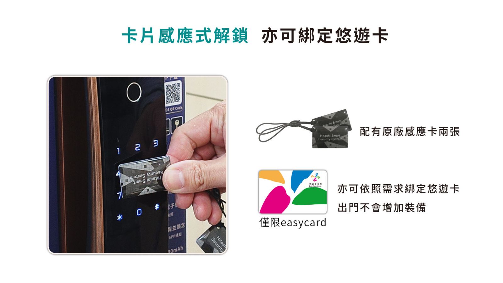 ●卡片感應式解鎖, 可綁定悠遊卡(easycard)