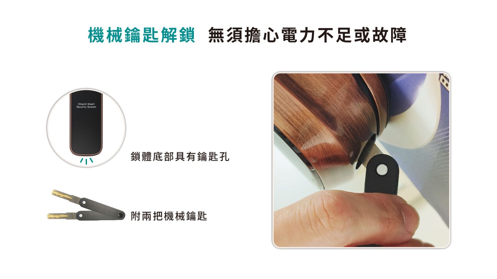 ●機械鑰匙解鎖, 無須擔心電力不足或故障