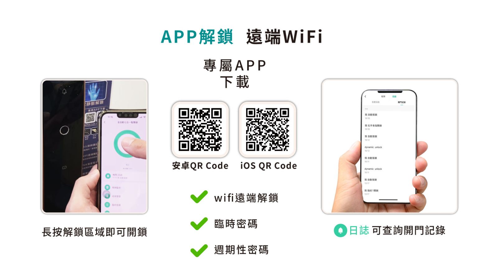 ●專屬APP遙控解鎖,遠端WiFi,臨時密碼、週期性密碼解鎖功能