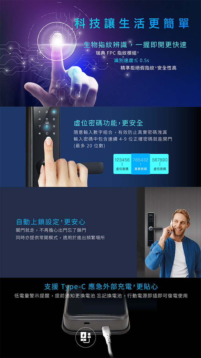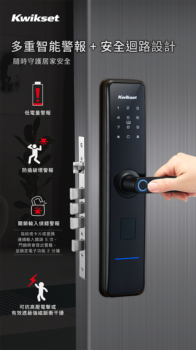 防撬破壞/錯誤開鎖輸入/低電量提示等多重智能警報功能
